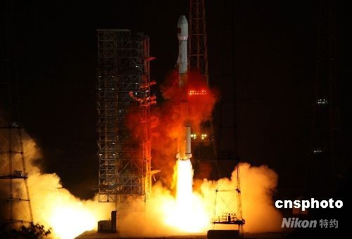 資料圖:北京時間4月25日23時35分,中國首顆數據中繼衛星“天鏈一號○一星”在西昌衛星發射中心由“長征三號丙”運載火箭成功發射升空。