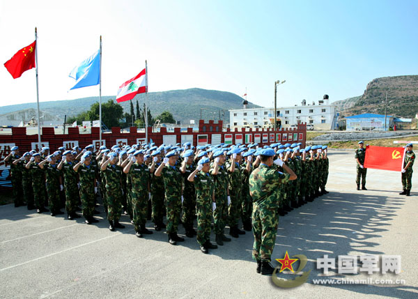 七一前夕,中國第四批赴黎巴嫩維和部隊的百余名黨員面對黨旗莊嚴宣誓,表示將忠于黨、忠于人民、忠于祖國,用自己的實際行動為和平橄欖枝增添新的光彩。 陶 陳攝影報道