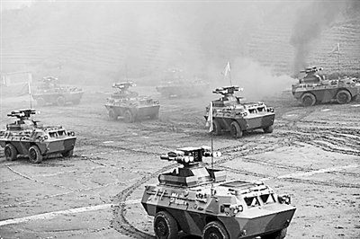 高大威猛的戰車上,受閱官兵個個意氣風發,士氣高漲,猶如一尊尊塑像接受著黨和人民檢閱……