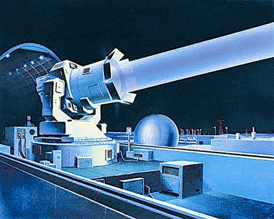激光炮——是一種用反射鏡將激光匯集成很窄的光束,通過專用瞄準系統對目標進行跟蹤,然后利用激光的高燒蝕性使目標上的儀器設備失靈或失效。美軍曾運用激光炮擊落了一枚“陶”式反坦克導彈。激光炮有三大特點:一是發散性小,激光聚集性強、方向性好,能準確殺傷目標;二是能量密集,激光的能量很大,亮度比太陽光高出一百多億倍,用它照射焦炭半秒鐘,就能把炭塊加熱到九千度以上,能穿透任何目標;三是傳播速度快,激光以光速傳播,用它對運動目標實施打擊,根本不需要考慮提前量,是對付敵衛星、導彈、飛機等高速運動目標的克星。
