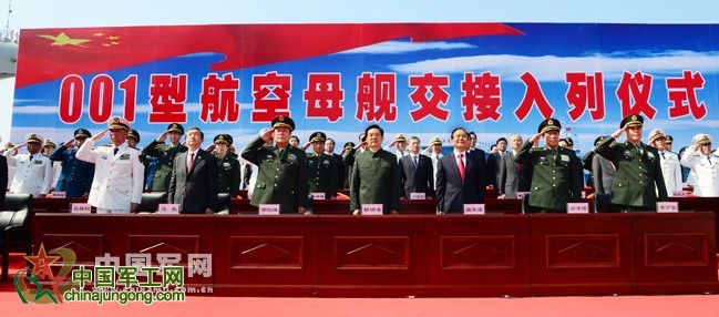中共中央總書記、國家主席、中央軍委主席胡錦濤出席交接入列儀式并登艦視察。中共中央政治局常委、國務院總理溫家寶一同出席并宣讀黨中央、國務院、中央軍委的賀電。