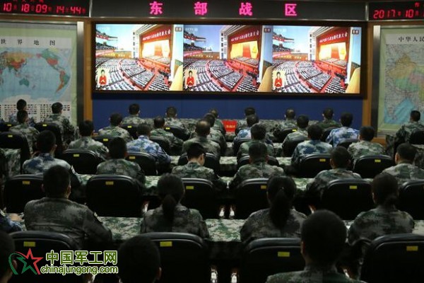 海拔4700多米的演訓場,瑞雪初霽,第77集團軍某旅執行戰備訓練任務分隊官兵,利用 “星網工程”設備及時跟進了解盛會動態;正在戈壁山地等陌生環境中錘煉本領的空軍某旅,以作戰單位為小組在陣地上組織收聽收看;飛速奔馳的列車上,正在執行遠程押運任務的火箭軍某部官兵,第一時間通過移動終端同步收看盛會實況……十九大開幕盛況傳遍大江南北座座軍營,官兵無不深受鼓舞、豪情滿懷。
