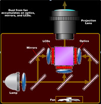 LCD投影機內部容易積累煙塵和焦油,影響整體投影效果和使用壽命