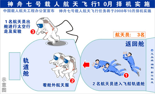 中國載人航天工程新聞發言人介紹說,神舟七號飛船將在10月發射升空。