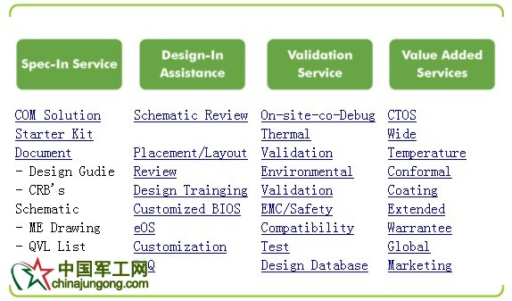 新漢目前已成功推出COM Express設計項目,該COM-E項目的成功實施很大程度上了得力于專業的技術支持。在整個開發周期階段,新漢COM技術服務中心(CCC)提供的一系列開發工具包和專業的技術支持,使每一項設計都勝券在握。