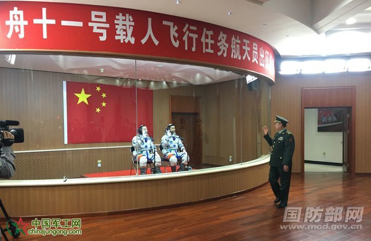 景海鵬代表飛行乘組對黨和人民的關懷、首長的鼓勵表示感謝,表示一定服從命令,聽從指揮,密切配合,精心操作,圓滿完成神舟十一號飛行任務。請祖國和人民放心!