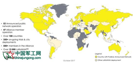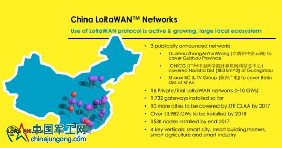 實際上,目前全球已有52張LoRa網絡覆蓋100多個國家,中國市場對于LoRaWAN協議的采用主要聚焦于針對智能城市、智能建筑/家居、智能農業和工業等垂直領域,目前國內已有3個公開發布的LoRa網絡,包括覆蓋整個貴州省的貴州中安云網、覆蓋廣州南沙區(803平方千米)的廣州中國科學院計算機網絡信息中心的網絡以及覆蓋西安北林區的陜西廣電網絡。此外,中國還有16個私有/試驗的LoRaWAN(>10 GWs)網絡并已安裝了1,732個網關。