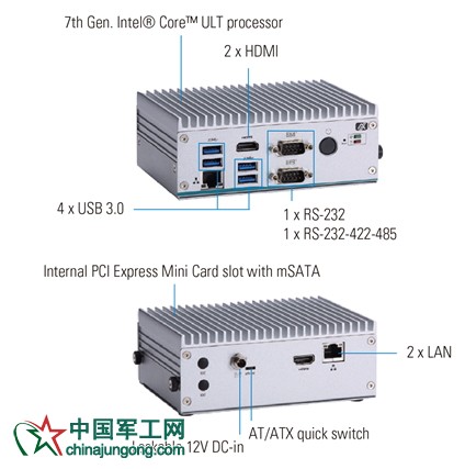 艾訊科技全新推出超輕薄無風扇嵌入式系統eBOX560-512-FL,搭載雙核心Intel® Core™ i5-7300U 3.5 GHz或Celeron® 3965U 2.2 GHz中央處理器 (原名稱Kaby Lake),配備1組260-pin的DDR4-2133 SO-DIMM系統存儲器插槽最高可達16GB。2組HDMI界面支援高畫質4K雙熒幕顯示功能,創新的完美規格提供無與倫比的多媒體效能,最適合應用于智慧工廠自動化、精簡型計算機、工業控制器系統、數位電子廣告牌以及零售設備等領域。