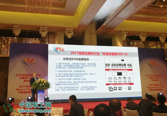 廣州魅視電子科技有限公司葉偉飛副總經理現場發布『2017信息化視聽行業“年度關鍵詞Top 10”——KVM坐席協作』。