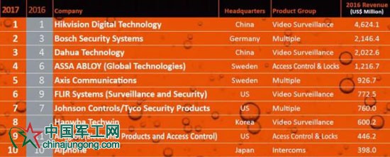 12月6日晚,知名媒體a&s公布了2017年度“全球安防50強”排名暨調查報告,大華股份風頭強勁,憑借2016年20.226億美元的營收和32.3%的銷售增速,從去年的第4名躍升至今年的第3名。在這份全球榜單中,前三甲企業中國占據兩席,意味著中國企業主導全球安防市場的大局已然形成。
