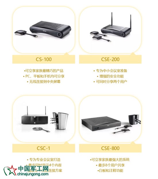 無論使用PC、平板還是移動設備,用戶只需輕點按鈕,會議內容便可瞬間通過大屏幕共享給每一位與會者??闪⑾淼?款不同型號產品分別適用于小型、中型、專業及董事會級別會議室的可立享產品,均能以最簡單、最直觀的方式呈現會議內容。