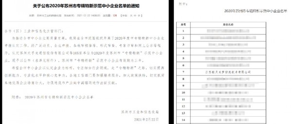 (入選2020年度蘇州市“專精特新”示范中小企業)