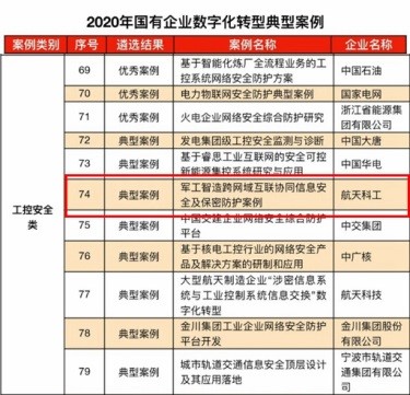 近日,國務院國資委發布了《關于發布2020年國有企業數字化轉型典型案例的通知》,公布了100個國有企業數字化轉型典型案例,七〇六所第十二事業部的《軍工智造跨網域互聯協同信息安全及保密防護案例》經過嚴格篩選和專家答辯評審成功入選,成為集團公司唯一一個入選案例。