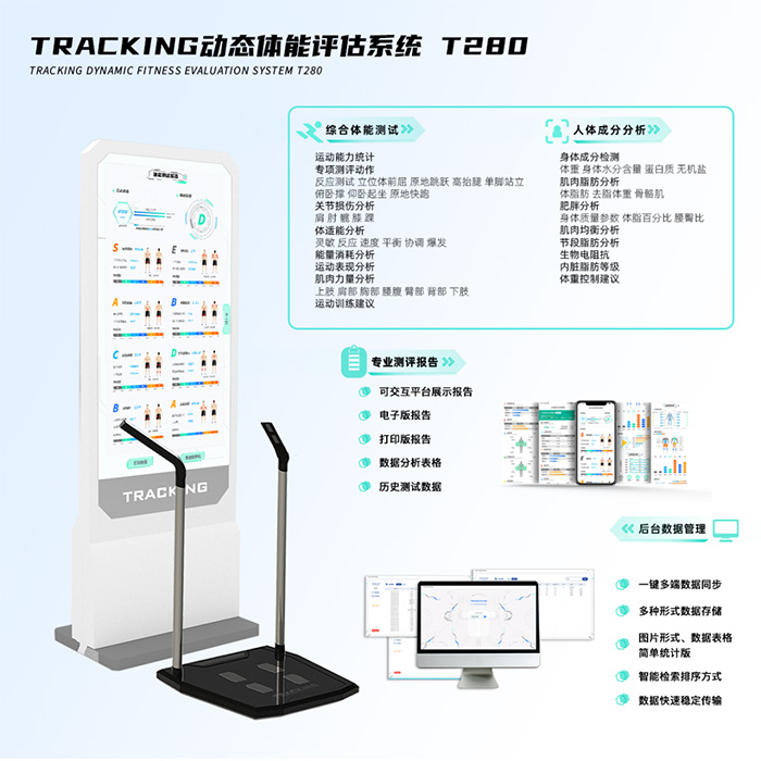 TRACKING動態體能評估系統T280 是集動態體適能評測以及高精度數據導出為一體的智能化體能健康測評設備。