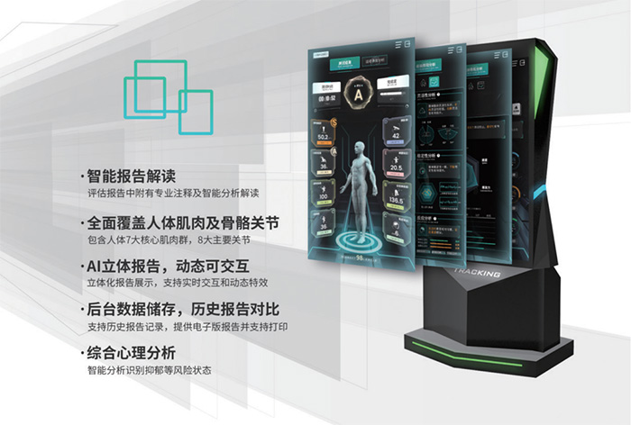 軍用心理與運動智能風險評估一體機是一款集綜合心理評估、運動數據統計、體質體能評估、運動健康分析、智能訓練指導為一體的科技體育設備。