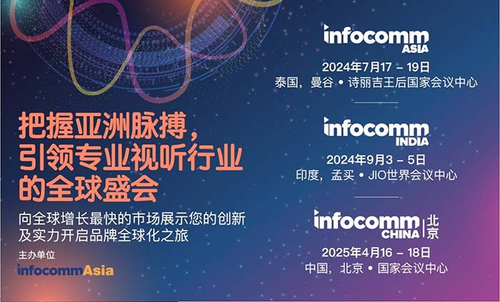 InfoCommAsia Pte Ltd 是亞太區首屈一指的專業視聽和集成體驗商貿展會的主辦單位。InfoCommAsia 主辦的展會每年在中國、印度和亞洲舉行,將全球和區域解決方案提供商、垂直市場最終用戶以及與亞太地區最重要的供應鏈市場聯系起來。