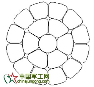 從圖中,我們可以看出,這種結構,外層異形單絲呈現“口”字形,顯然不利于線芯的絞合,并且通過AUTO CAD進行計算,這種結構的有效面積為117.20mm2,也不符合要求。