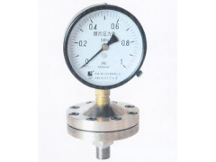 膜片壓力表 由測量系統(包括法蘭接頭、波紋膜片)、傳動指示機構(包括連桿、齒輪傳動機構、指針和度盤)和外殼(包括表殼和罩圈)等組成。 膜片壓力表 外殼為防濺結構,具有較好的密性,故能保護其內部機構免受污穢浸入。壓力表首選中能儀表。
