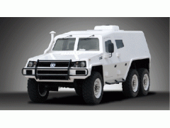 該車總重8.6噸,采用長頭駕駛室,承載式防彈車身,可搭載國產150kW或136kW柴油共軌電噴發動機,也可搭載進口160kW斯太爾柴油機,配有非獨立懸架門式橋,變剛度大行程螺旋彈簧,采用全時全輪驅動,裝有軸間和輪間差速器和差速鎖,并裝備有中央充放氣系統,氣頂油盤式制動器。