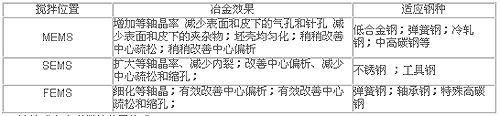 不同位置的電磁攪拌具有不同的冶金效果,具體見表