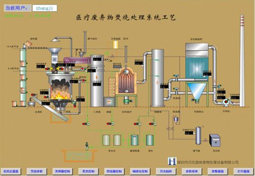 1. 項目簡單工藝主要針對城市醫療垃圾進行處理,醫療垃圾收運后運到處置中心進行焚燒處理,垃圾首先進入焚燒爐和二燃室進行配風焚燒,焚燒后的煙氣通過鍋爐進行降溫、除酸噴霧塔和布袋除塵器進行除酸和除塵,然后通過35米煙囪直接排放;鍋爐產生的蒸汽用于發電或其它用途,本自控系統主要控制垃圾燃燒后產生的煙氣溫度和煙氣成本含量,保證減少二次污染。