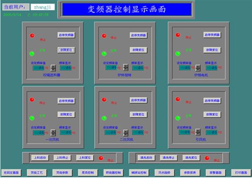 現場采集和顯示控制設備,基本選用國產元件,一般選用的測量1200度以上的溫度S分度熱電偶,1200度以下500度以上用S分度熱電偶,500度以下用PT100熱電阻測量,直接與相應的PLC模塊連接,不需要任何的變送器元件;壓力選用壓力差壓變送器把壓力信號變成4-20mA的標準信號送到AI模塊;電機的轉速通過變頻器調節,頻率信號通過AI 模塊輸入,頻率的設定通過AO 模塊輸出4-20mA的標準信號進行控制,啟??刂仆ㄟ^DO模塊控制,設備狀態信號通過DI模塊輸入。