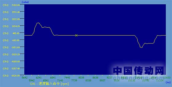 通過觀察兩條曲線(圖3控制器速度命令曲線1和圖4電機運行速度曲線1)可以發現,伺服電機幾乎是完全按照上位機速度運行命令在運動的,可是,為什么會出現這種加減速過程呢?