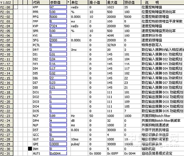 表1伺服相關參數