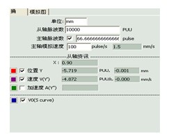 當模擬器產生的主動軸速度曲線和X水平跟蹤軸的速度曲線不一致時,使用者可以通過修正“導程”,或者點擊“下一步”修正“主軸脈沖數5-84”,來保證兩軸的速度曲線盡最大可能的保持接近。只有這樣才能保證同步的穩定性和精度!