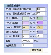 對于水平跟蹤X軸而言,主要保證速度上和主動軸編碼器速度追隨,追求的是速度保持主動軸一致。建造凸輪表格和曲線方法如下: