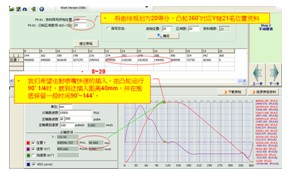 步驟3,將曲線規劃為20等分,凸輪360°對應Y軸21筆位置資料,做出凸輪位移曲線,如圖9: