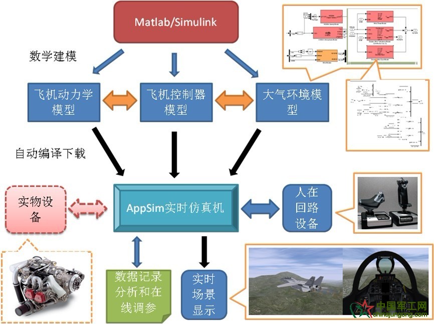 用于飛行模擬器的飛行實時仿真模型與一般的飛行仿真模型有著顯著的不同點。模型要求具有較高的逼真度,才能用于工程研究和飛行訓練;整個動力學模型要適應于飛機整個飛行包線內的運行,無論對于工程型還是訓練型模擬器,都要能夠模擬各類飛機故障和各種惡劣環境條件,因此整個仿真模型可能非常復雜,運算量巨大。最重要的一點是模型必須確保運行于實時環境中,從而能夠確保高逼真度的人在回路仿真。