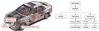 車內噪聲和振動往往由多個激勵,經由不同的傳遞路徑抵達目標位置后疊加而成。車內噪聲分為結構聲和空氣聲。